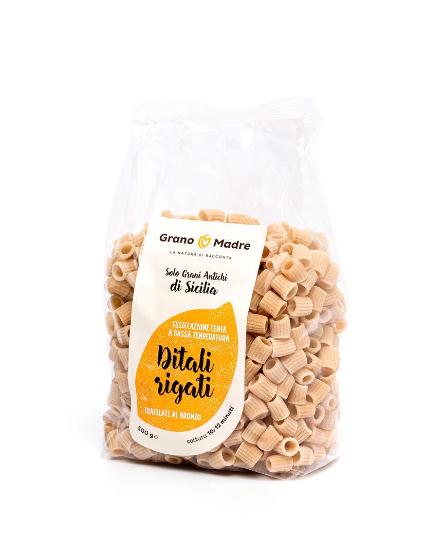 Piccoli ma pieni di carattere, i Ditali Rigati Grano Madre sono perfetti per minestre, vellutate e primi piatti elaborati. Grazie alla rigatura e alla trafilatura al bronzo, si fondono perfettamente a ogni ingrediente, regalando un morso piacevole e consistente. Un formato di pasta che riporta alla cucina dei nostri nonni, pensato per piatti caldi, confortanti e ricchi di sapore.